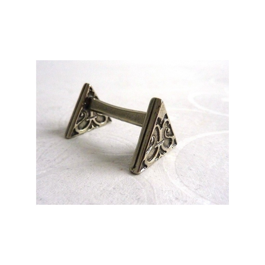 En bekväm säng för din älskade penna, tillverkad i fint arbetade nickle silver. En liten pärla av design och hantverk, är denna penna vila unika.