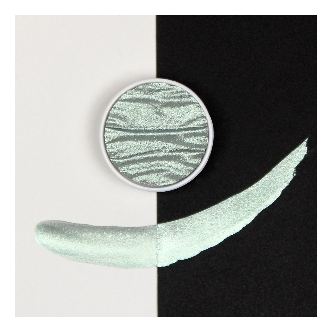 Mint Pearlcolor, handgjord i Tyskland, ger en uppfriskande metallisk nyans. Märkta förpackningar passar perfekt i en metallpalettruta.
